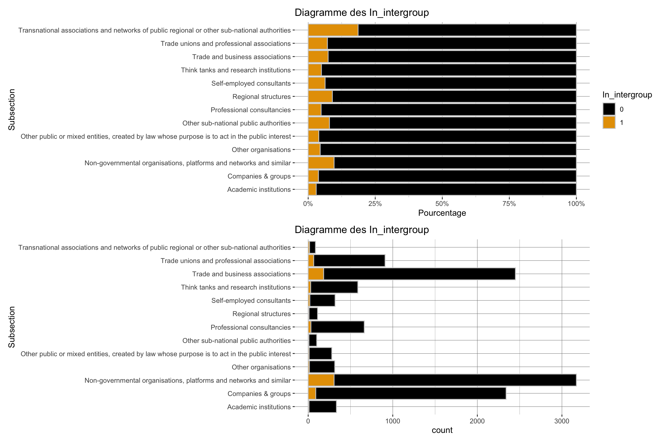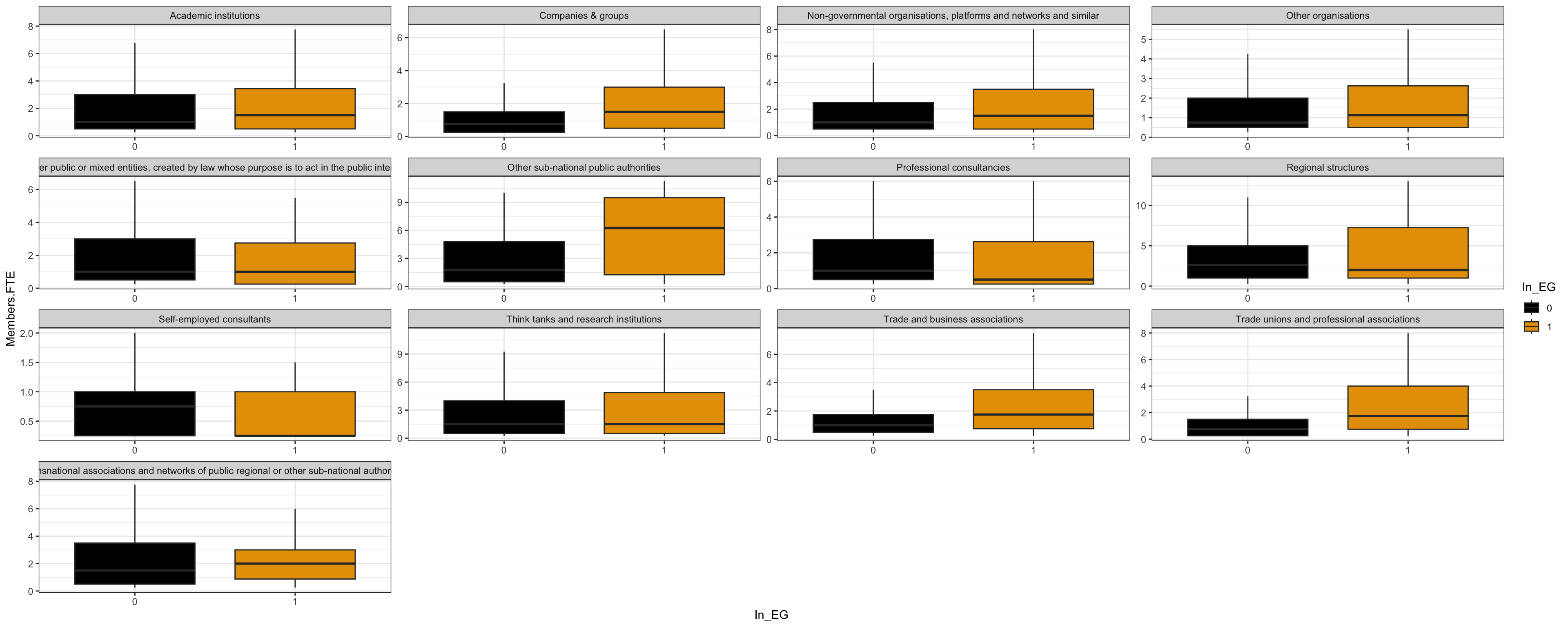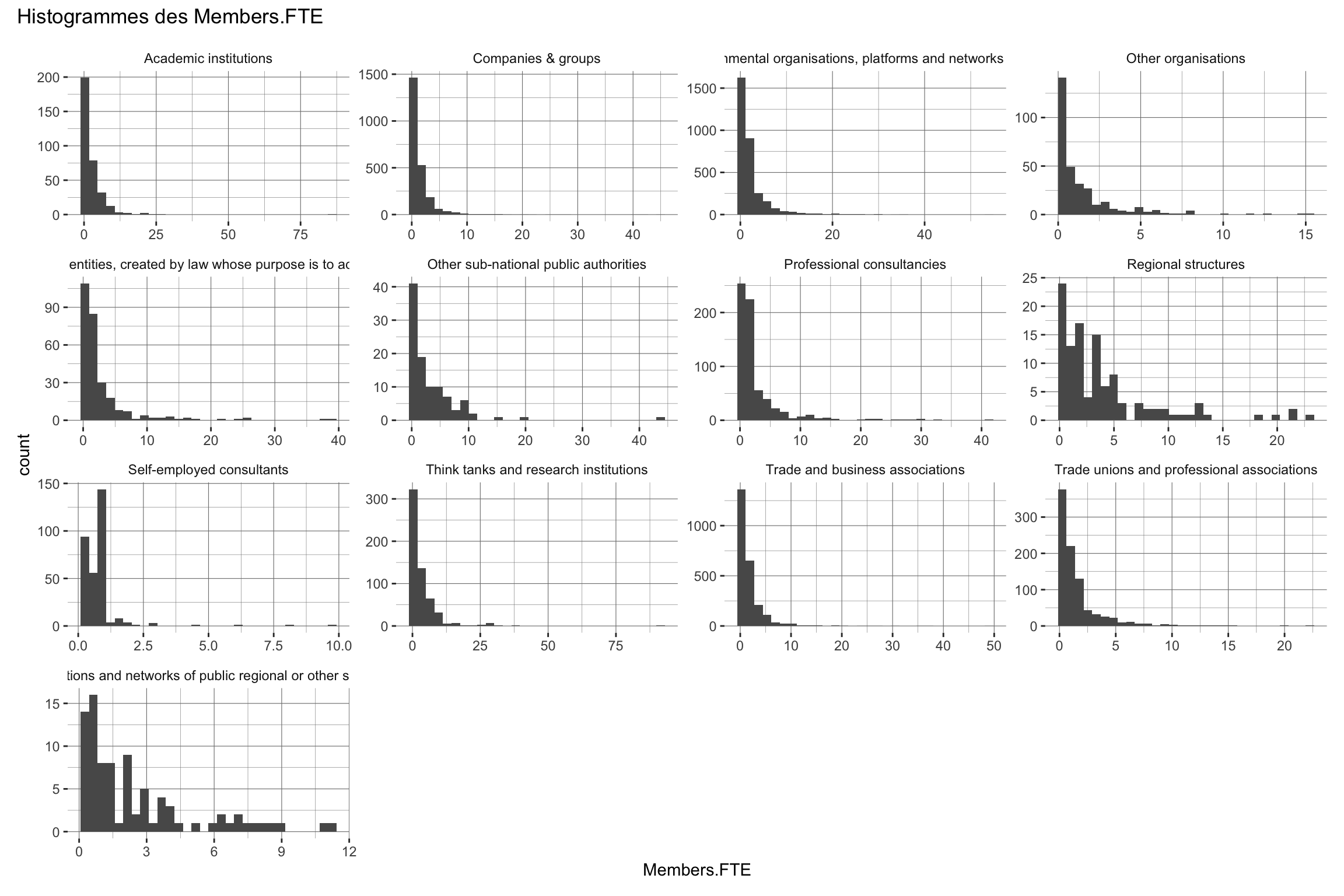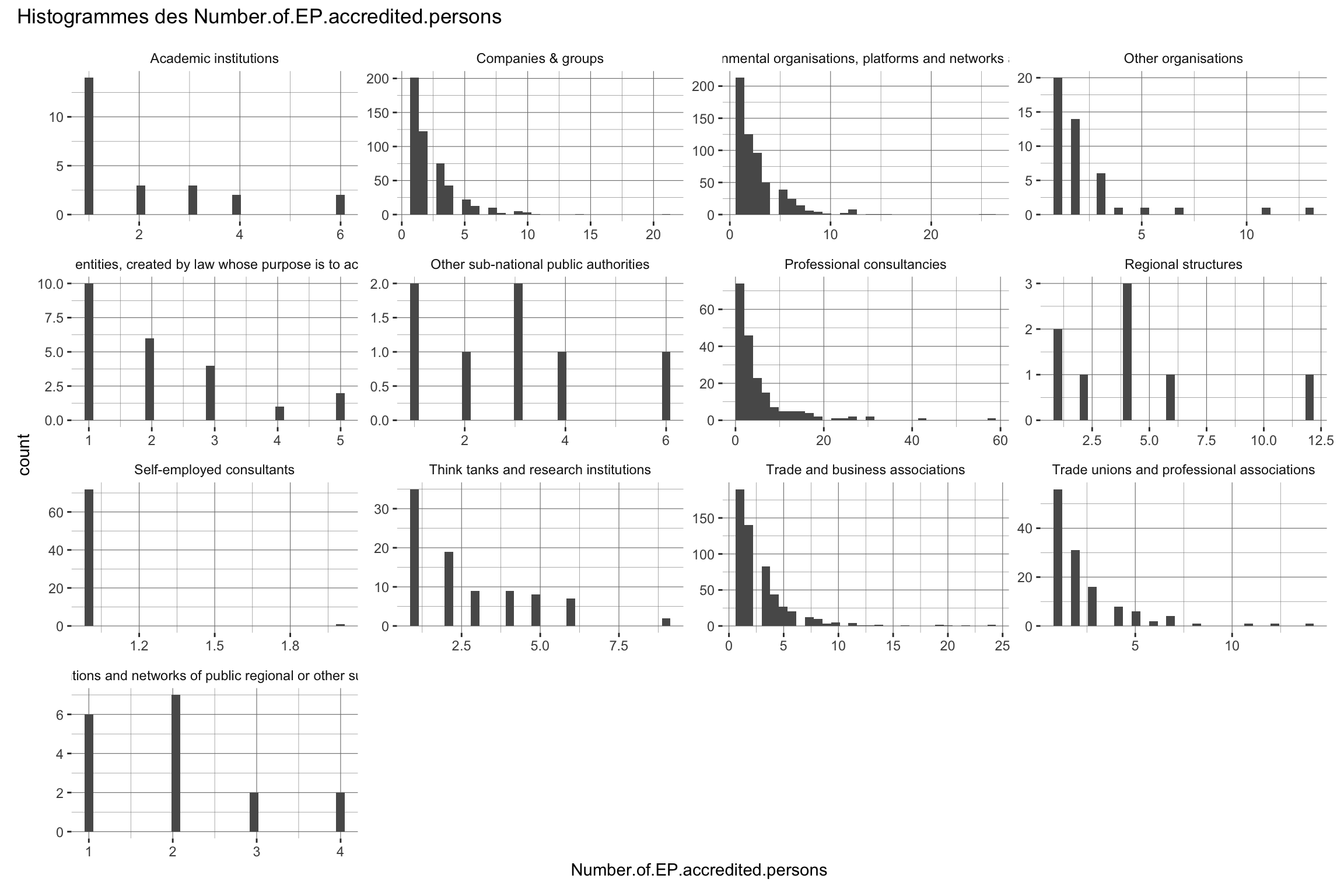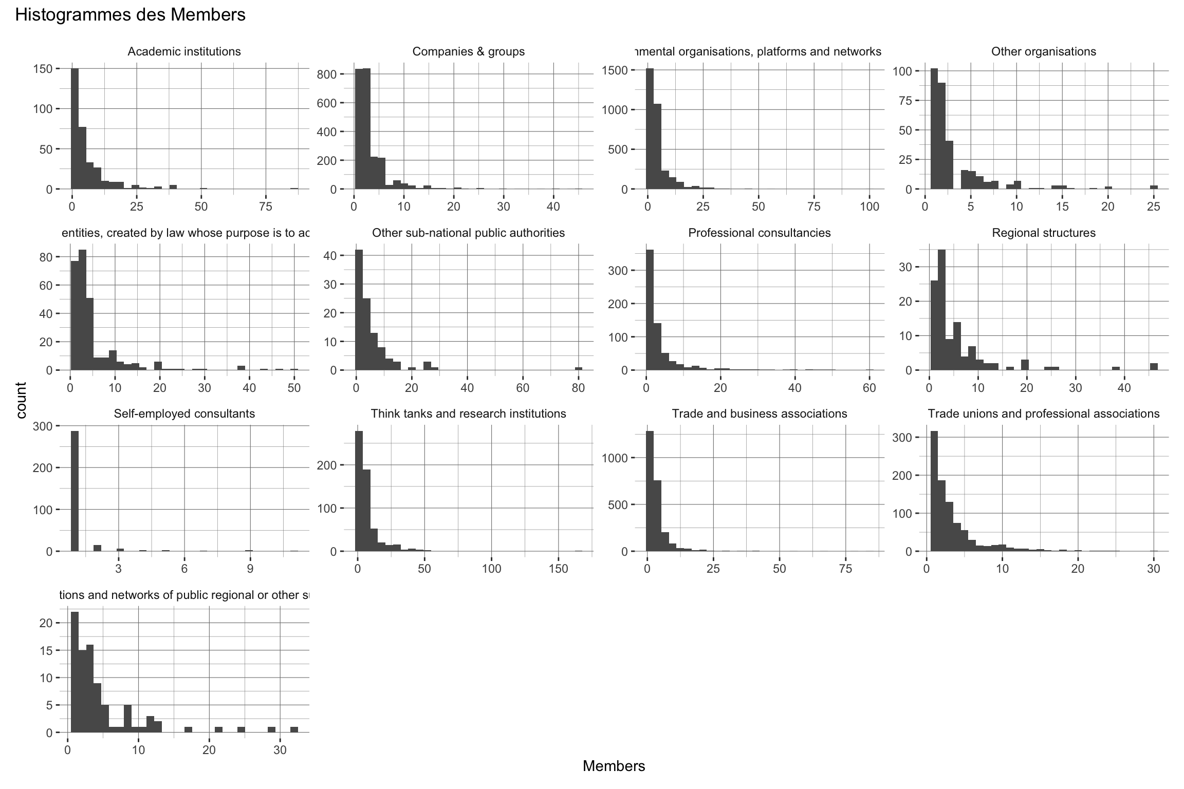 Nous utilisons le registre de transparence de l’Union Européenne pour observer les caractéristiques des groupes d’intérêts qui interviennent auprès de la Commissions Européennes, et en particulier pour observer les différences entre les groupes qui sont dans des groupes d’intérêts et ceux qui ne le sont pas.