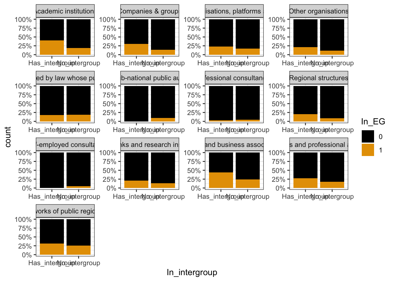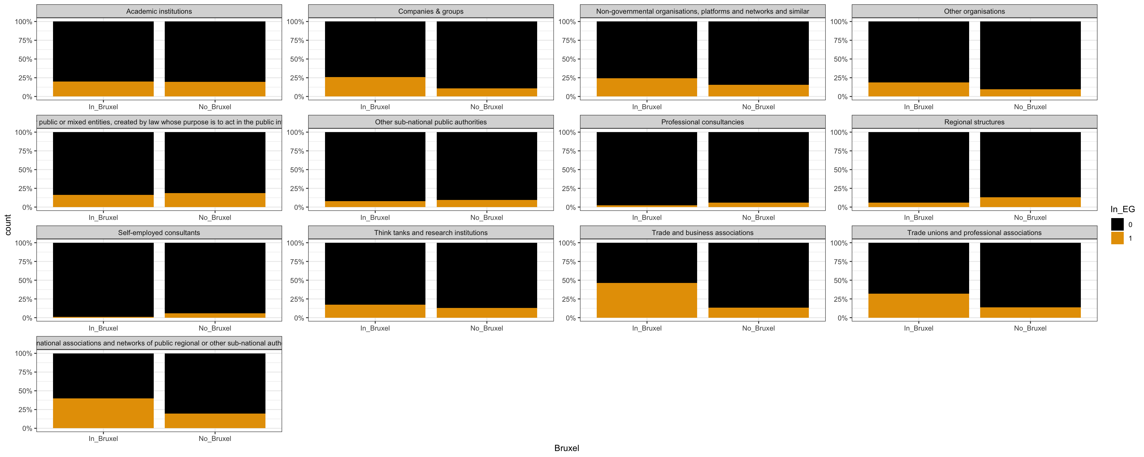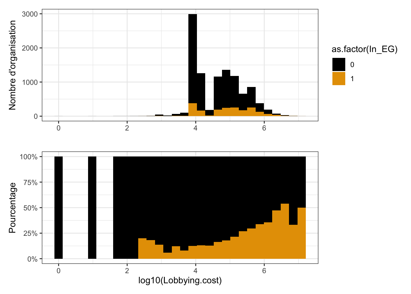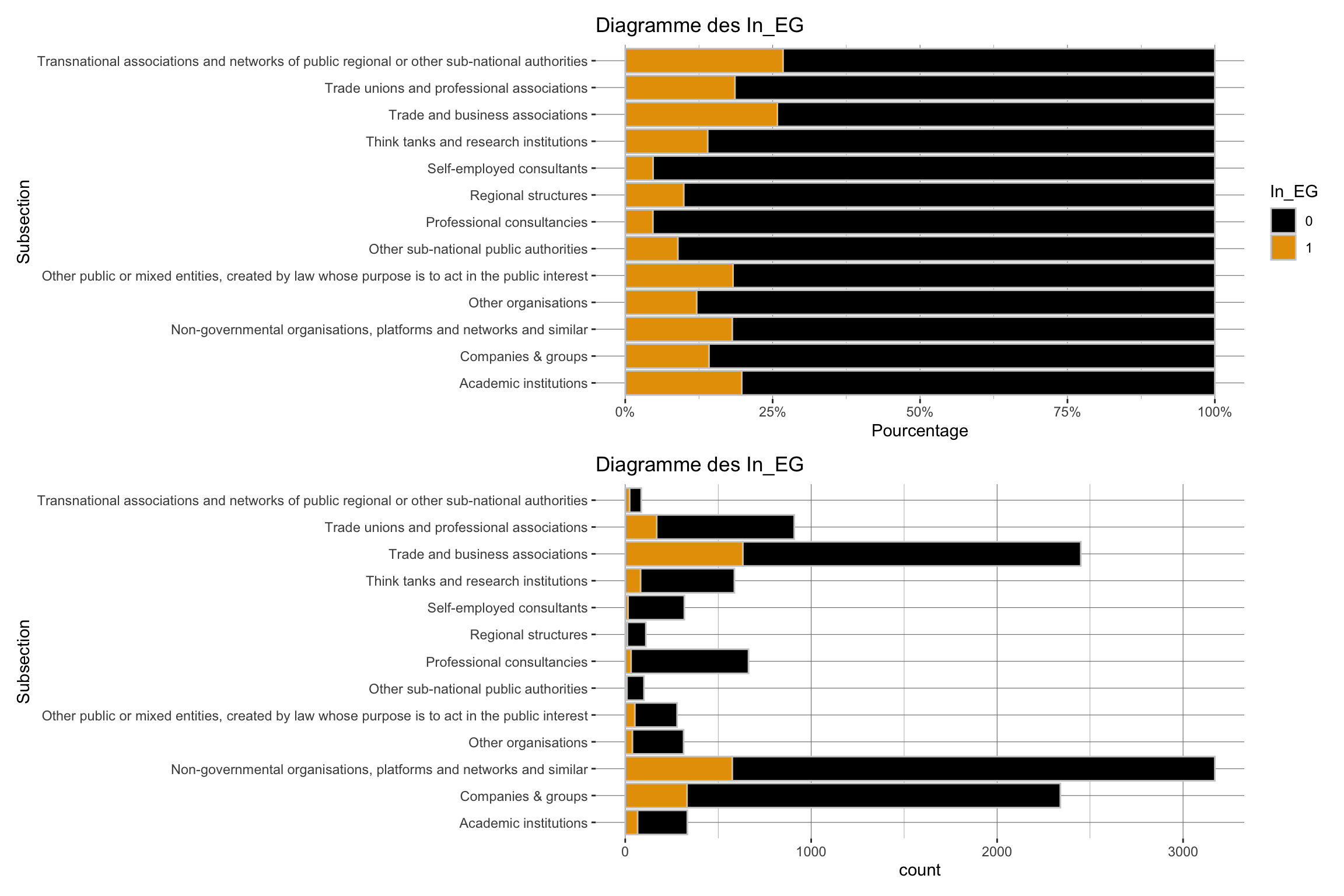 Nous utilisons le registre de transparence de l’Union Européenne pour observer les caractéristiques des groupes d’intérêts qui interviennent auprès de la Commissions Européennes, et en particulier pour observer les différences entre les groupes qui sont dans des groupes d’intérêts et ceux qui ne le sont pas.