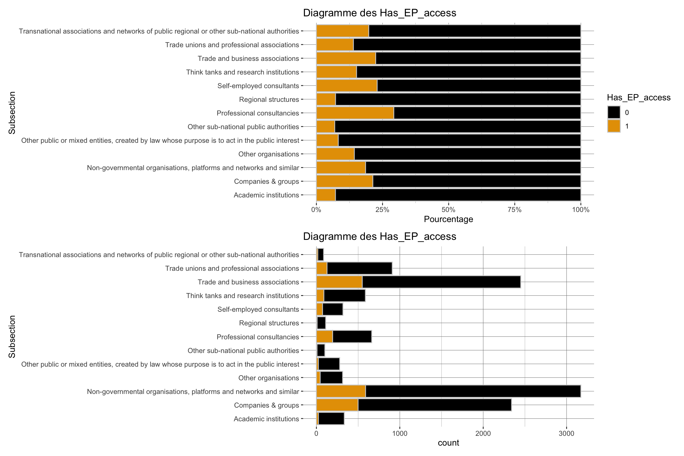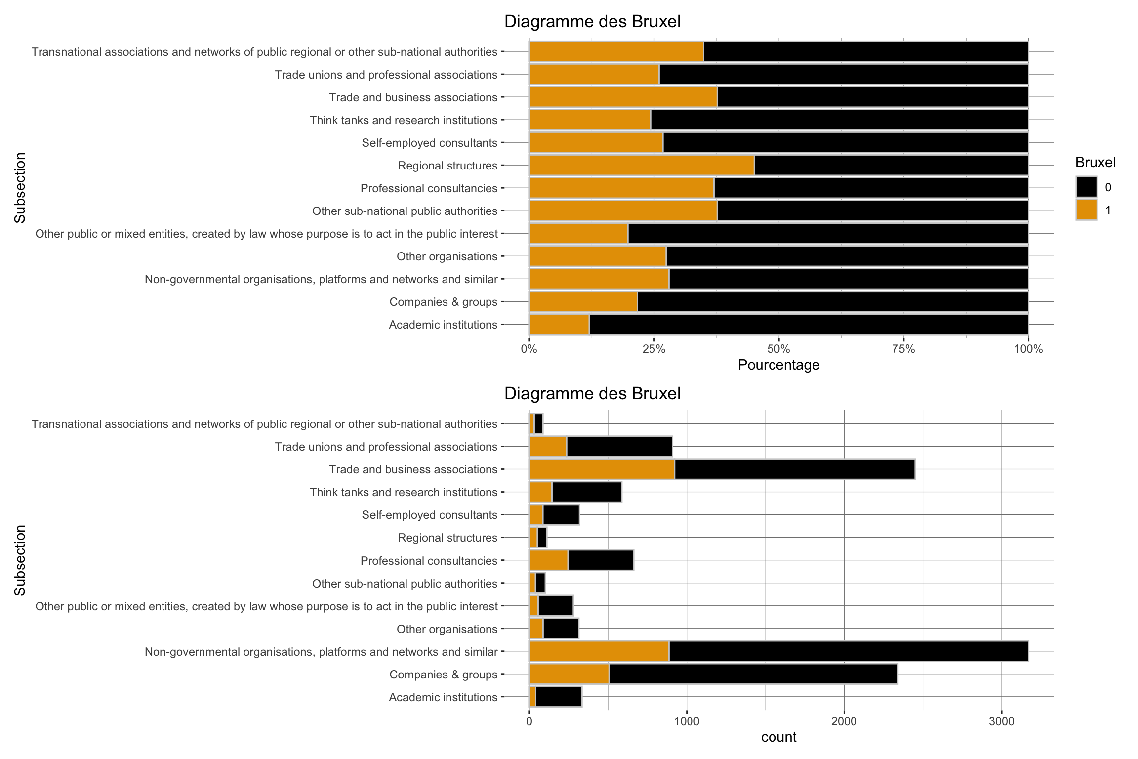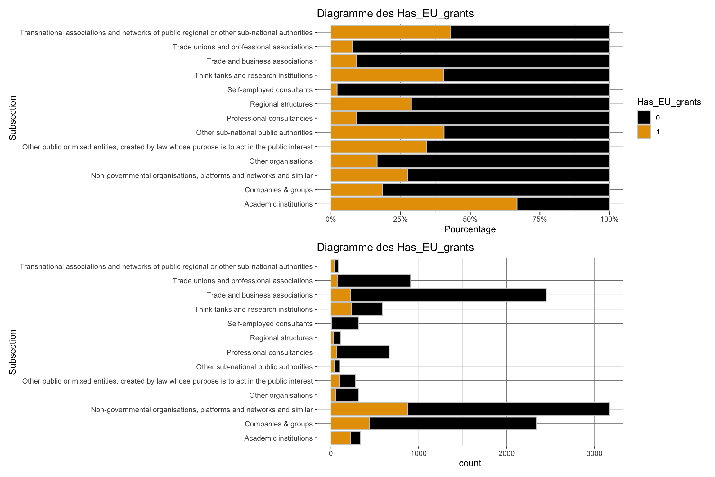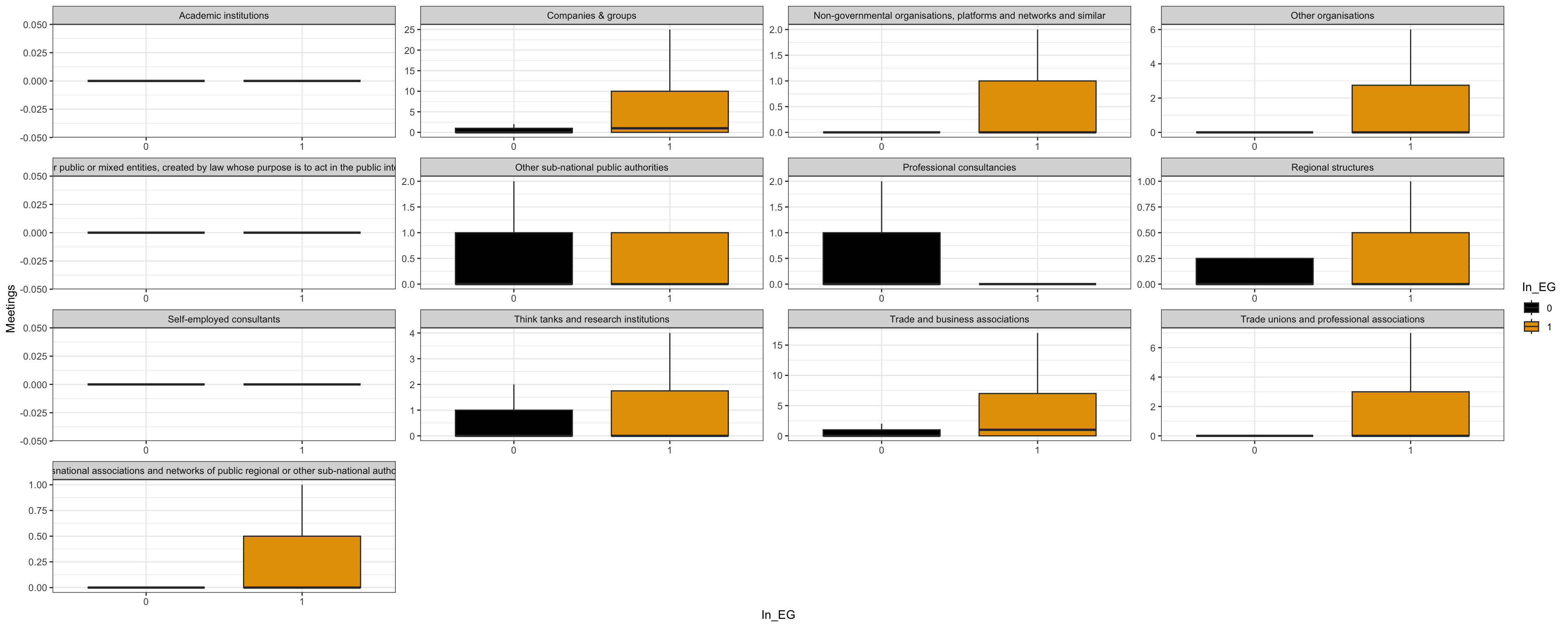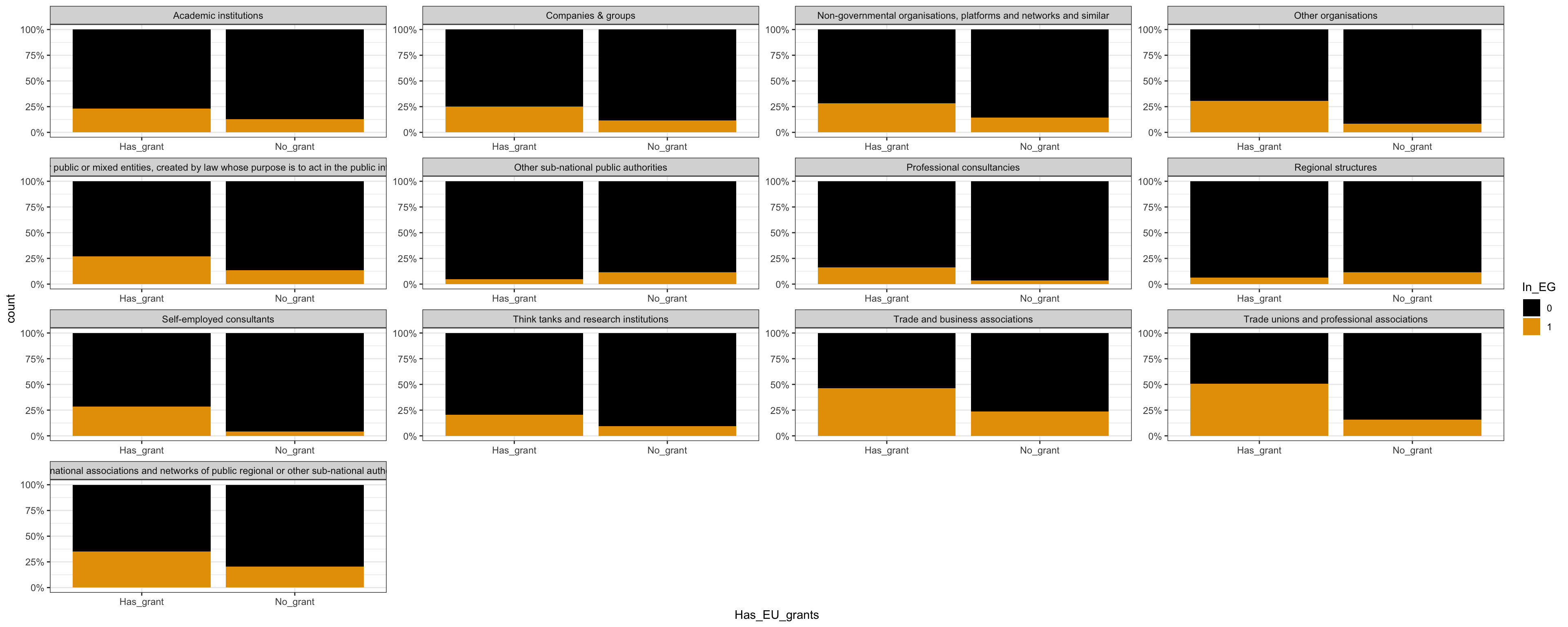 Nous utilisons le registre de transparence de l’Union Européenne pour observer les caractéristiques des groupes d’intérêts qui interviennent auprès de la Commissions Européennes, et en particulier pour observer les différences entre les groupes qui sont dans des groupes d’intérêts et ceux qui ne le sont pas.