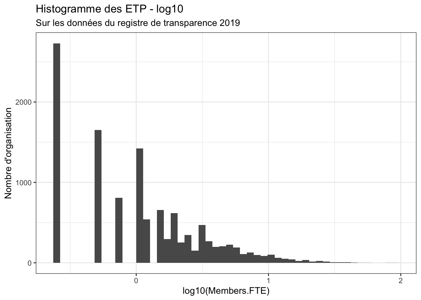 On utilise aussi en parallèle les données nettoyées par LobbyFacts, qui permet de nettoyer des informations sur le nombre de temps pleins et sur les budgets : https://www.lobbyfacts.eu/