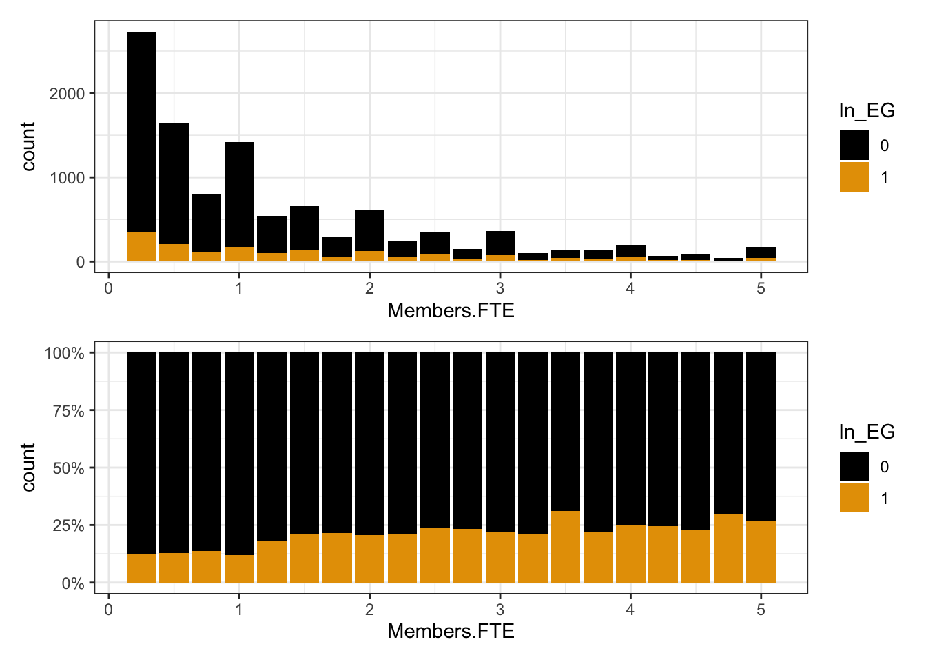 | Members.FTE | 1.00 (0.50, 3.00) - max = 86.00) | 0.75 (0.25, 1.75) - max = 45.00) | 0.75 (0.25, 1.50) - max = 11.50) | 1.00 (0.50, 2.75) - max = 54.00) | 1.00 (0.75, 2.50) - max = 7.50) | 1.00 (0.50, 2.00) - max = 15.25) | 1.00 (0.50, 3.00) - max = 39.00) | 2.00 (0.50, 5.00) - max = 43.75) | 1.00 (0.50, 2.75) - max = 41.25) | 2.50 (1.00, 5.00) - max = 23.00) | 0.75 (0.25, 1.00) - max = 9.75) | 1.50 (0.50, 4.00) - max = 91.50) | 1.00 (0.50, 2.00) - max = 49.00) | 1.00 (0.25, 2.00) - max = 22.25) | 1.50 (0.50, 3.50) - max = 11.25) | 1.00 (0.50, 2.25) - max = 91.50) |