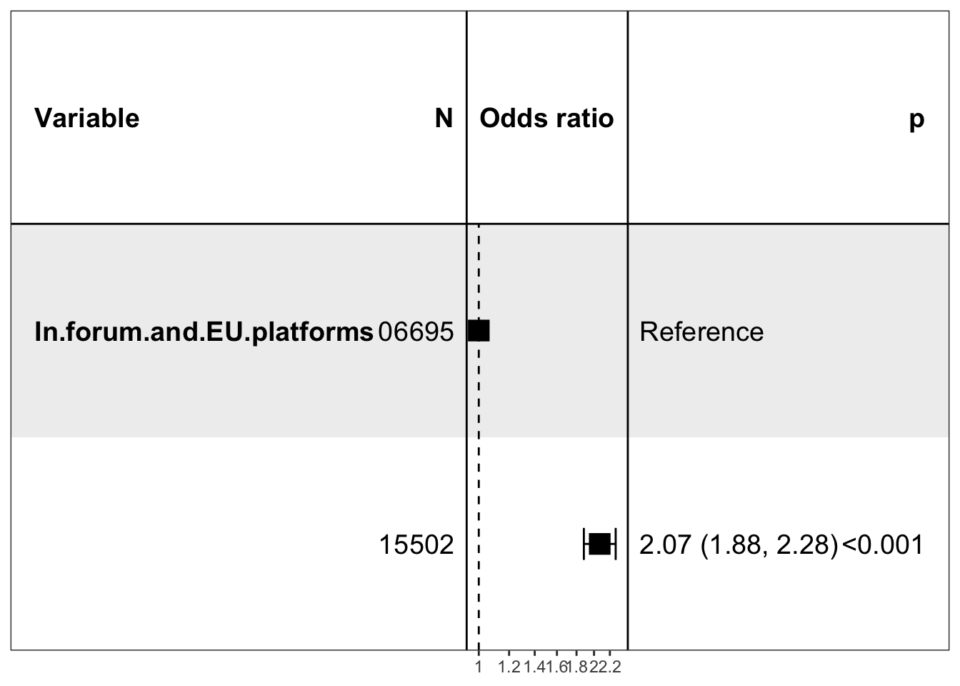 p-value2 | Has_forum N = 4,1631 |