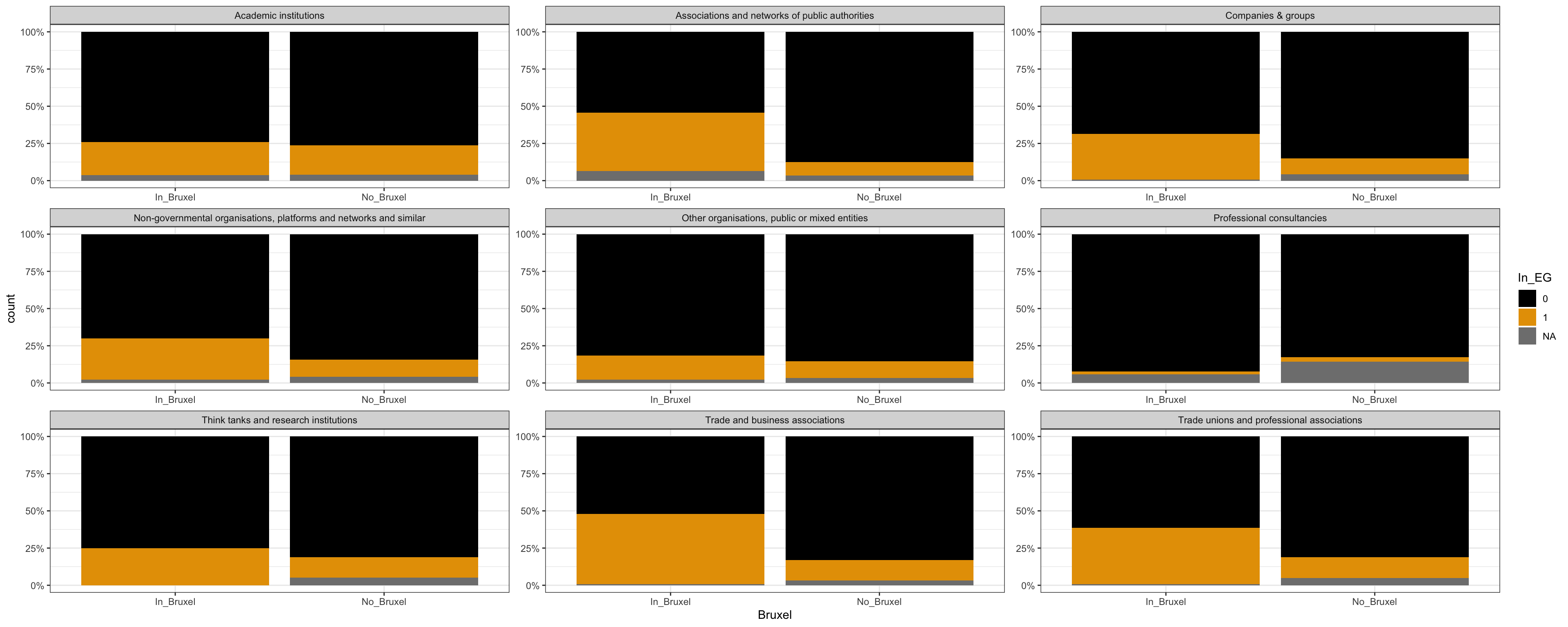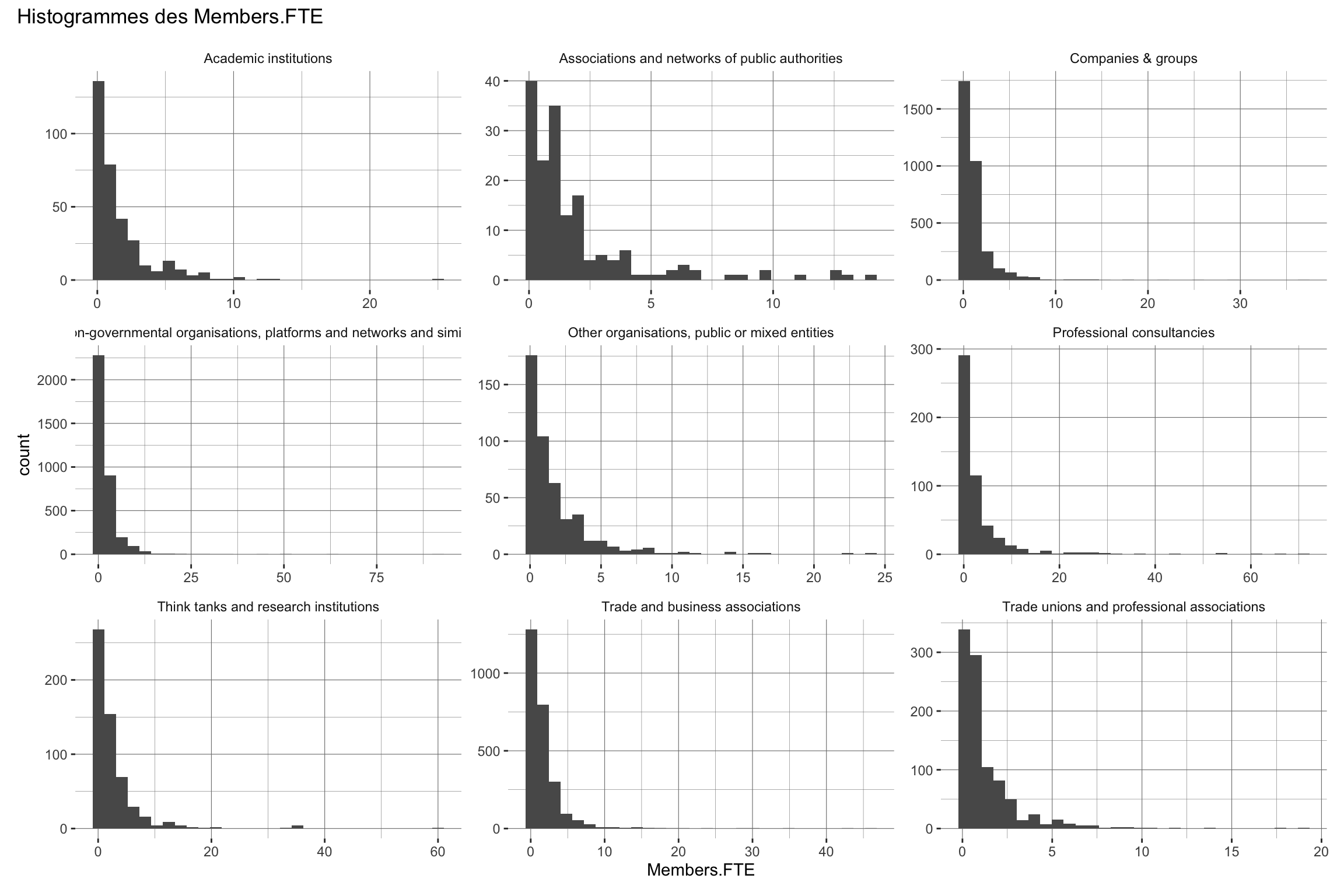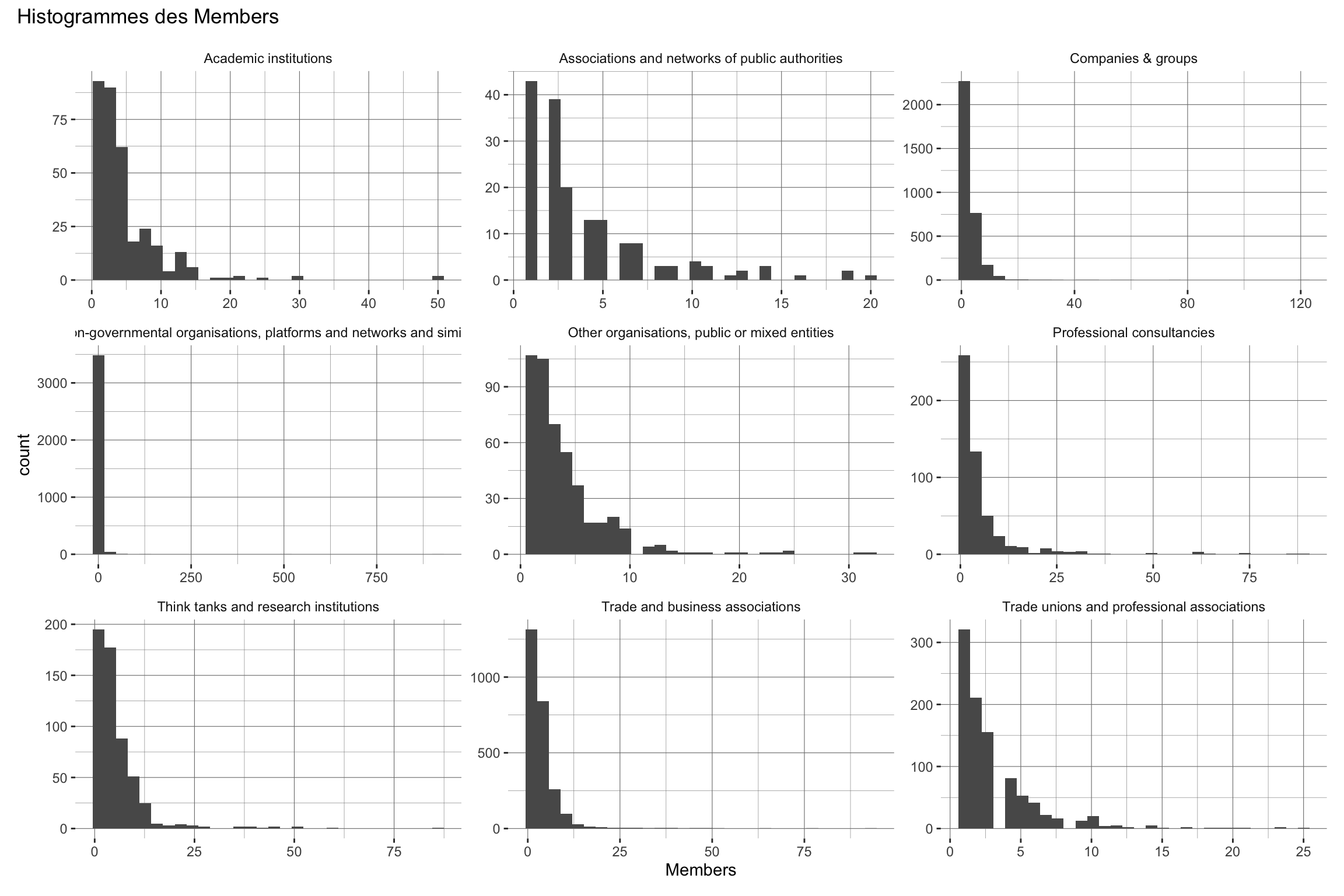 Nous utilisons le registre de transparence de l’Union Européenne pour observer les caractéristiques des groupes d’intérêts qui interviennent auprès de la Commissions Européennes, et en particulier pour observer les différences entre les groupes qui sont dans des groupes d’intérêts et ceux qui ne le sont pas.