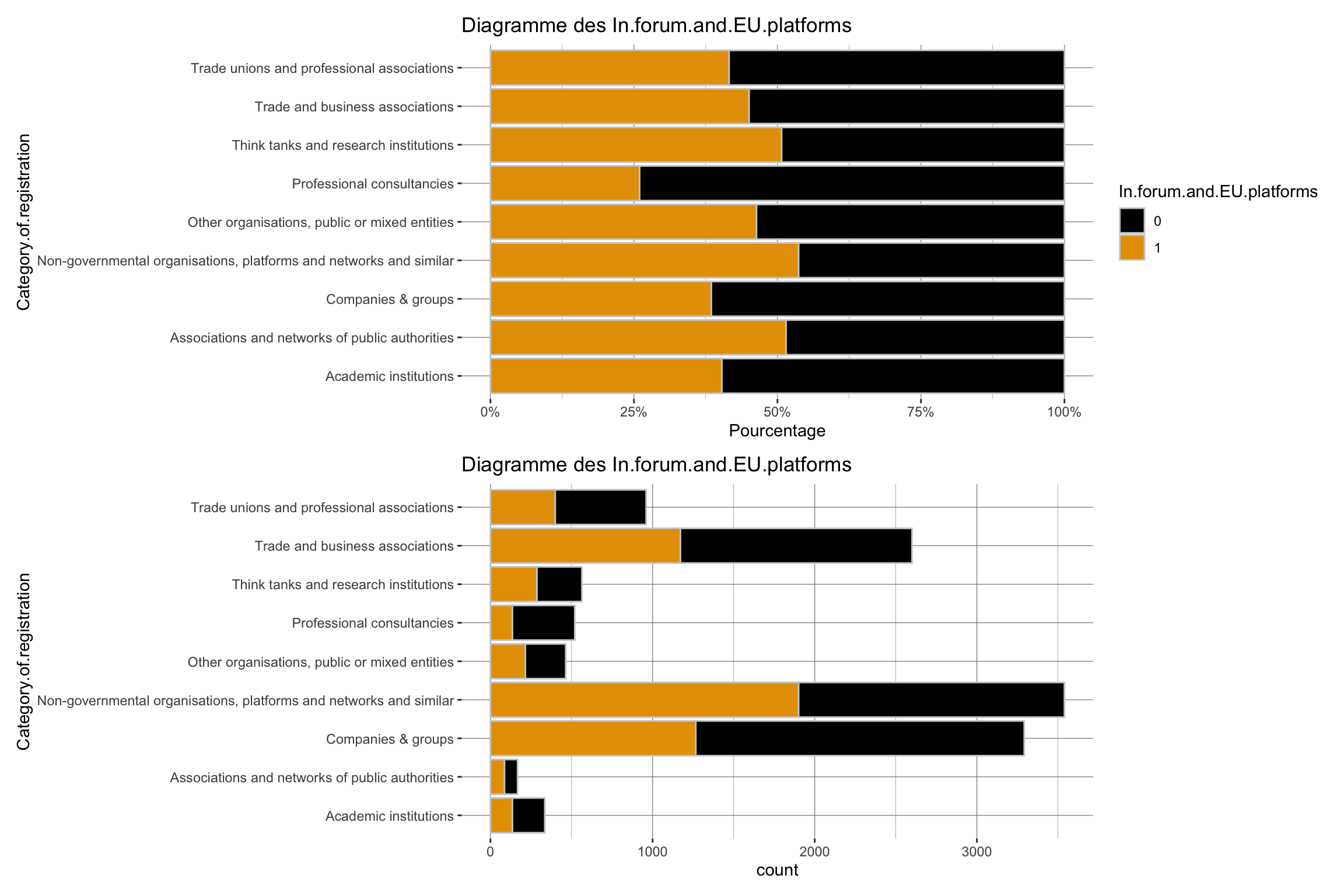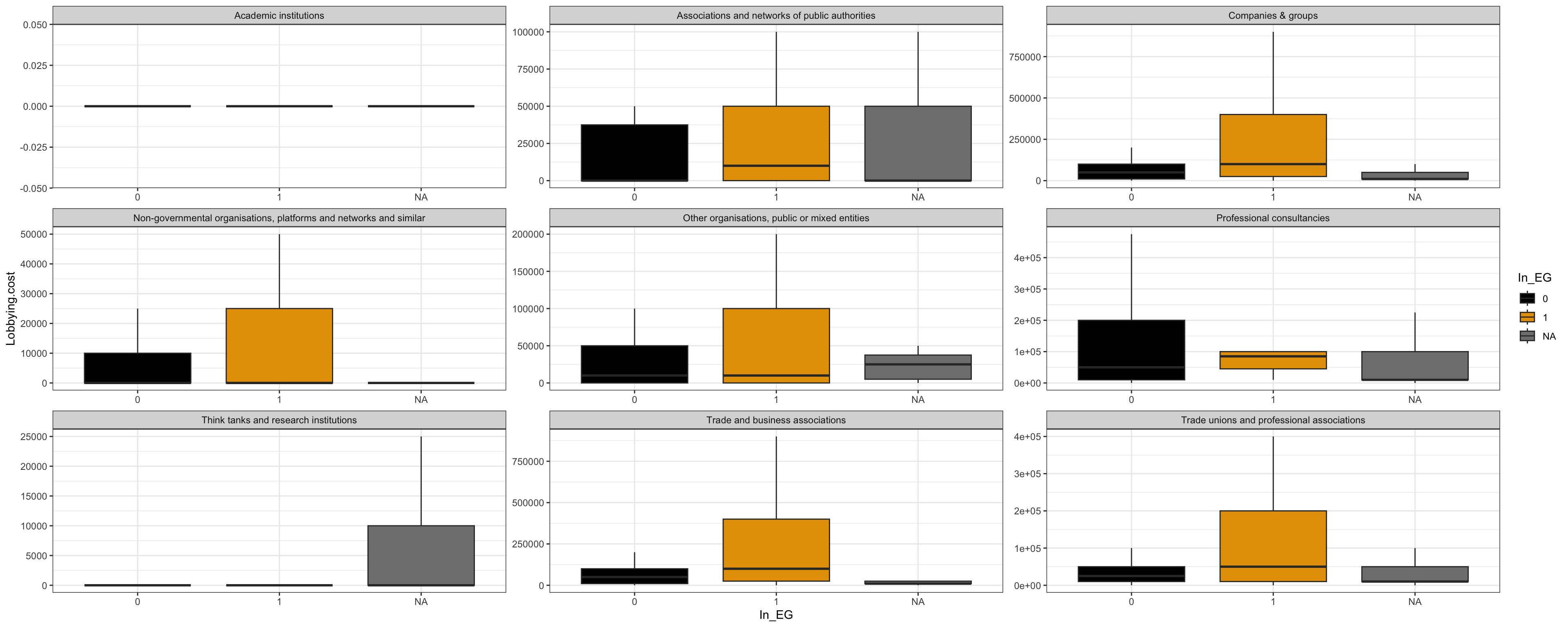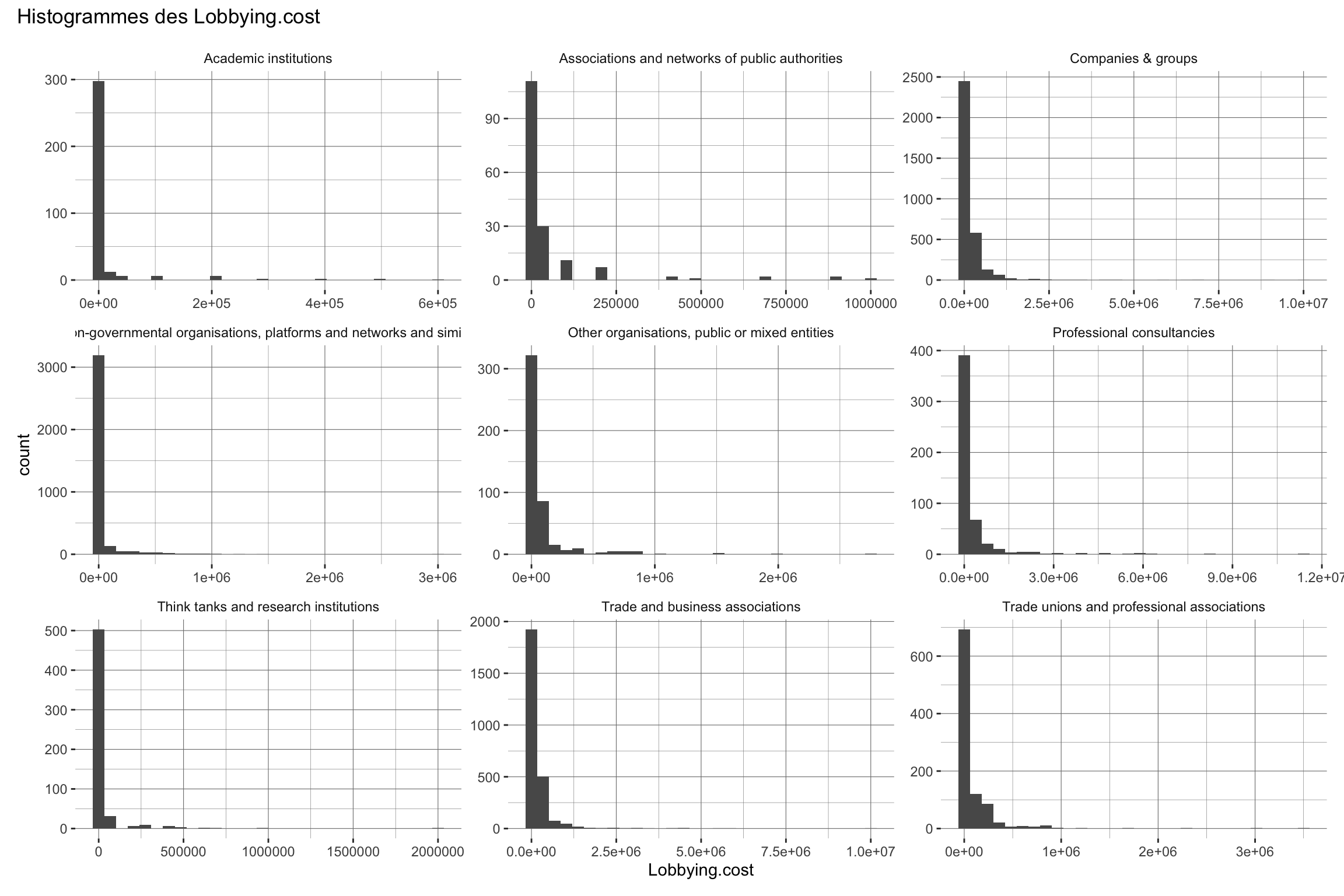 Nous utilisons le registre de transparence de l’Union Européenne pour observer les caractéristiques des groupes d’intérêts qui interviennent auprès de la Commissions Européennes, et en particulier pour observer les différences entre les groupes qui sont dans des groupes d’intérêts et ceux qui ne le sont pas.